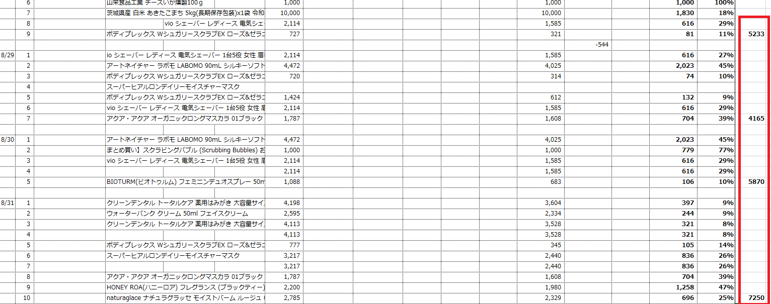 これを4セット仕入れていたので、利益は2日ほどで2332円となりました。この時の感動は今でも忘れません。